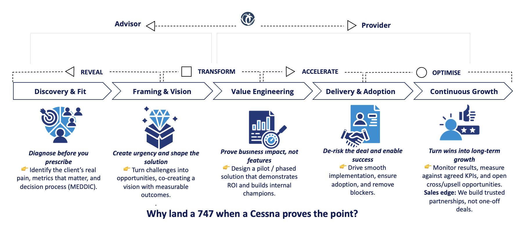 This is why the strongest commercial outcomes come from shifting your role from Advisor to Provider.